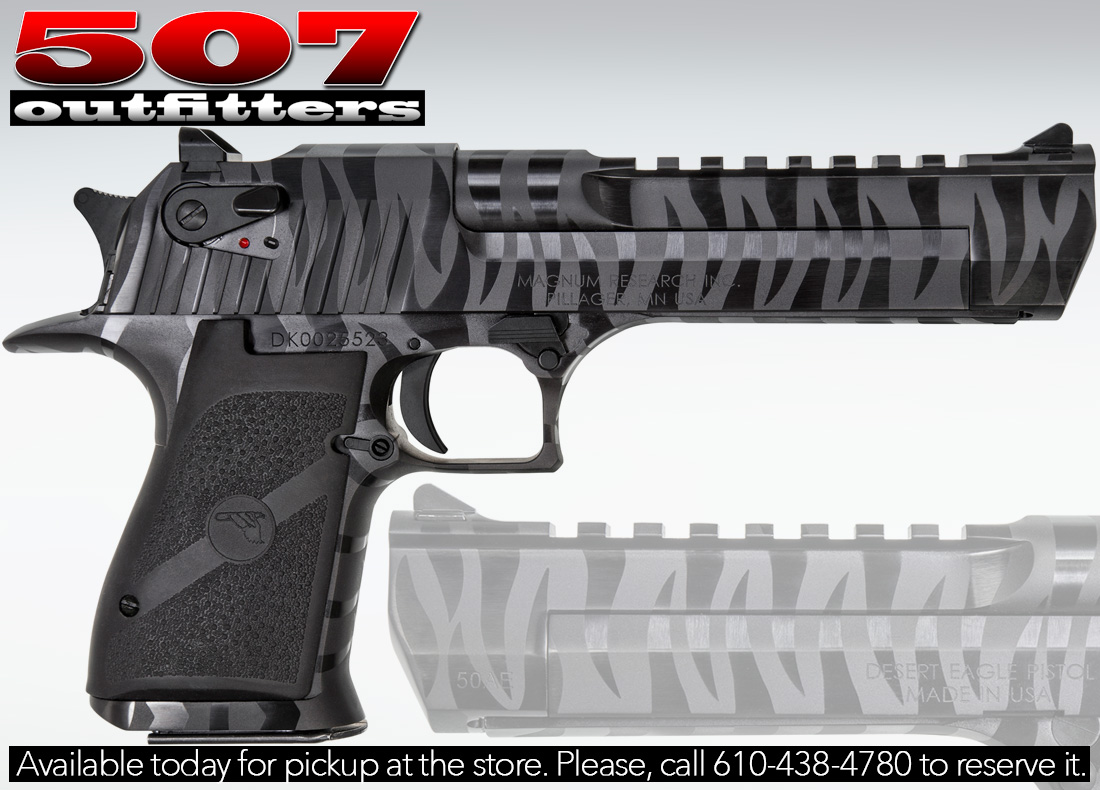 NEW Magnum Research Desert Eagle chambered in .50AE. This legendary hand cannon comes with one magazine and features Black with Tiger Stripes finish. We carry other Magnum Research firearms. Contact us for pricing and availability at contact@507outfitters.com, call us at 610-438-4780, or chat with us on WhatsApp by clicking in the bottom right corner.