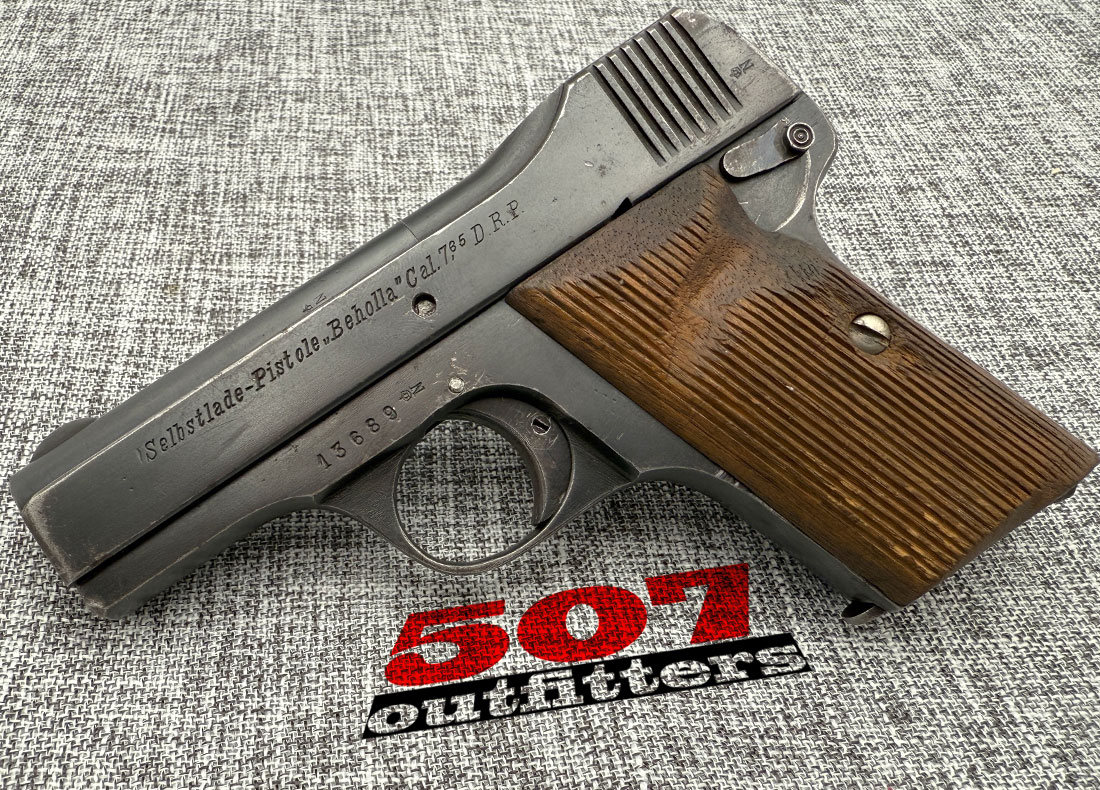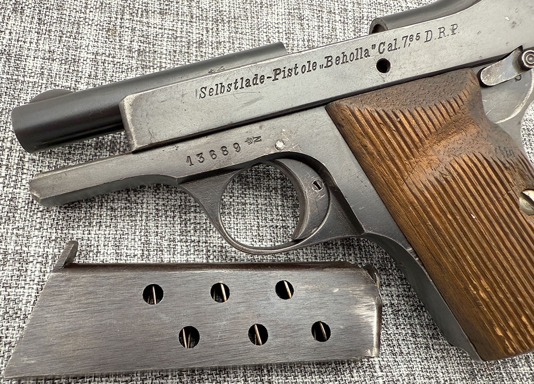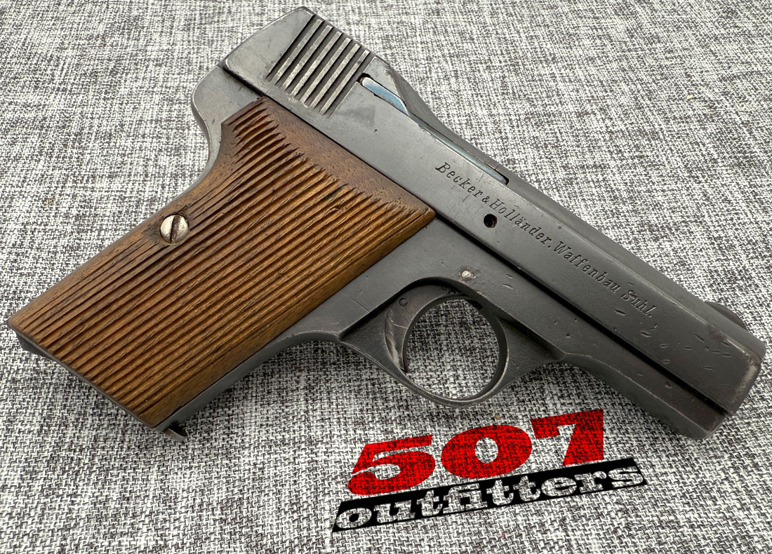Good Condition Becker & Holländer “Beholla” chambered in .32 Auto. This secondary military pistol used by the Imperial German Army was manufactured during World War I between 1915 and 1918. It features Crown over N Proof mark and no import markings. It comes with one 7-round magazine. Below are the actual photos of the gun.
