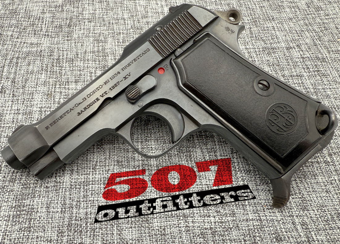 What you’re getting: Very Good Condition Beretta 1934 manufactured in 1937 (XV – 15th fascist year) chambered in .380 Auto (9mm Corto). Original finish on the gun is beautiful, barrel is dirty but with strong rifling. It features military-issued acceptance mark, “RE” (Regio Esercito) for the army. Available at 507 Outfitters in Easton, PA. We carry a huge selection of other Beretta firearms. Contact us for pricing and availability at contact@507outfitters.com, call us at 610-438-4780, or chat with us on WhatsApp by clicking in the bottom right corner.