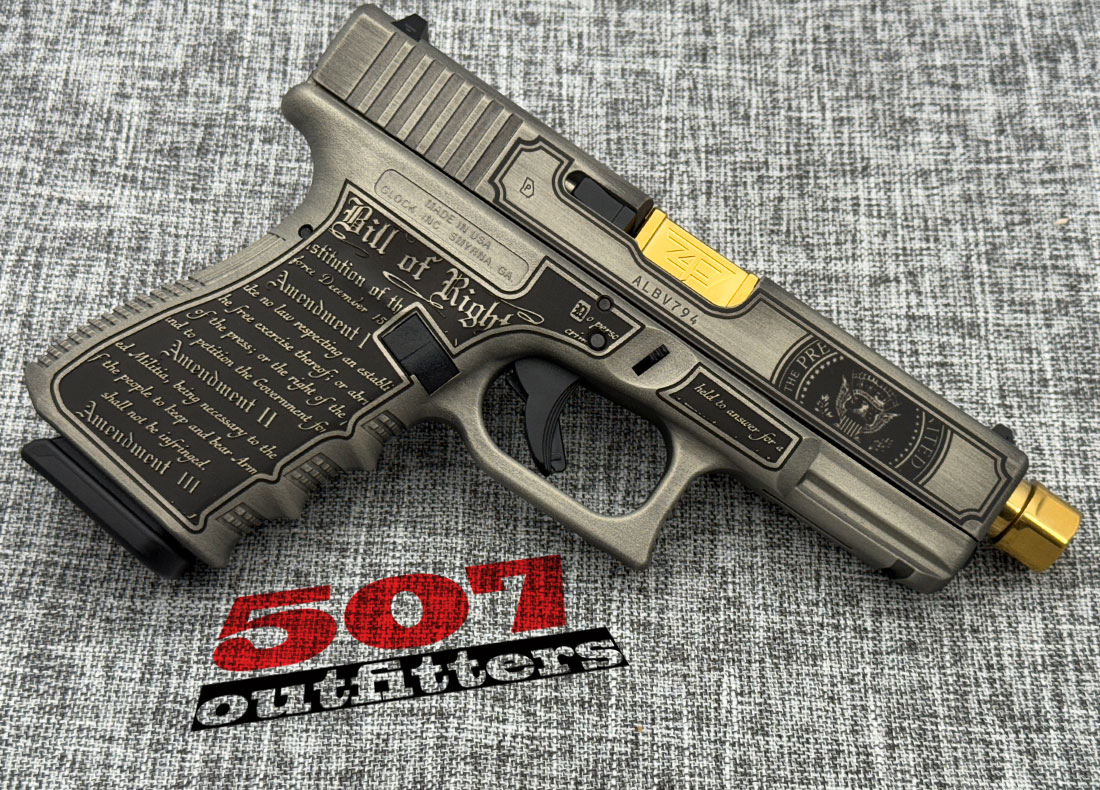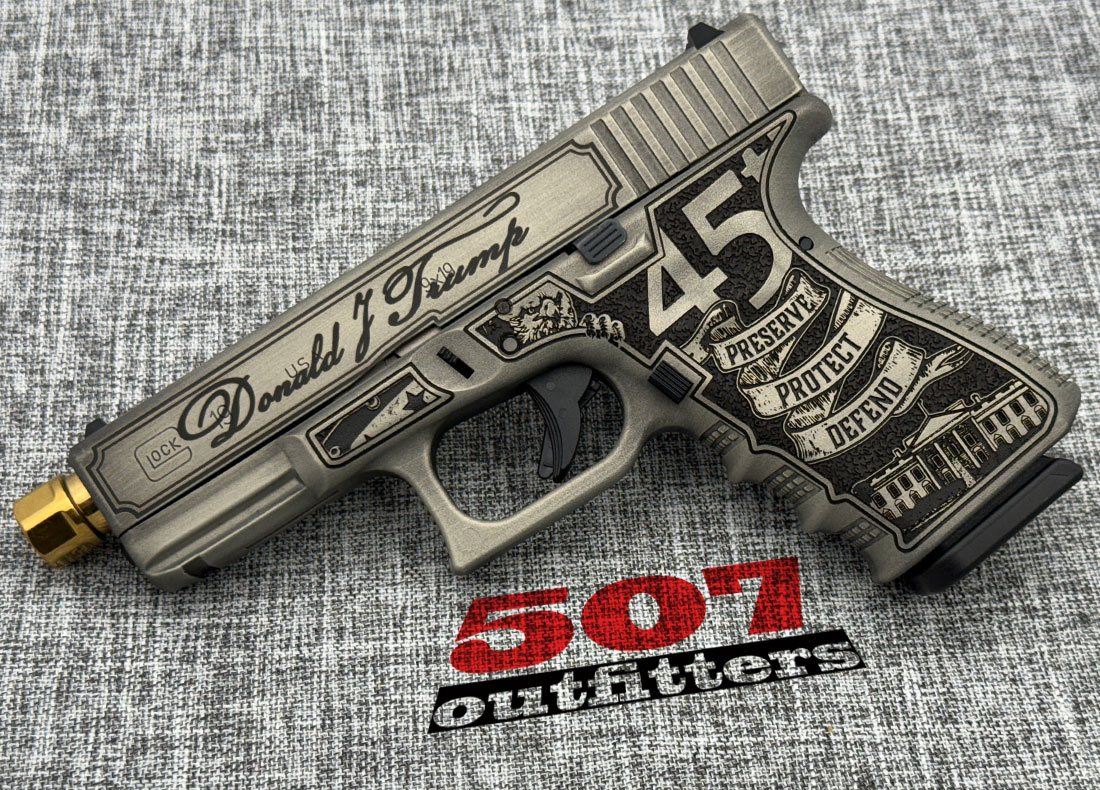 What you’re getting: New Glock 19 Trump 45th Edition chambered in 9mm. The gun comes with two 15-round magazines, original box and documentation. Available at 507 Outfitters in Easton, PA. We carry a huge selection of other Glock firearms. Contact us for pricing and availability at contact@507outfitters.com, call us at 610-438-4780, or chat with us on WhatsApp by clicking in the bottom right corner.