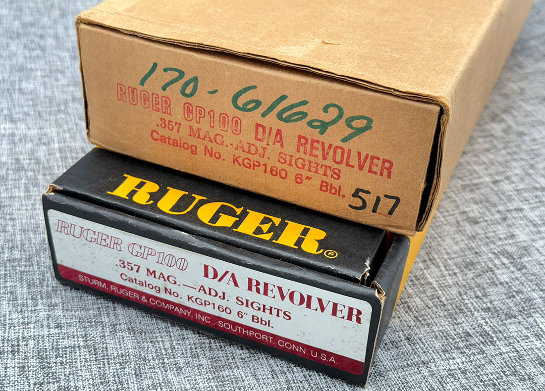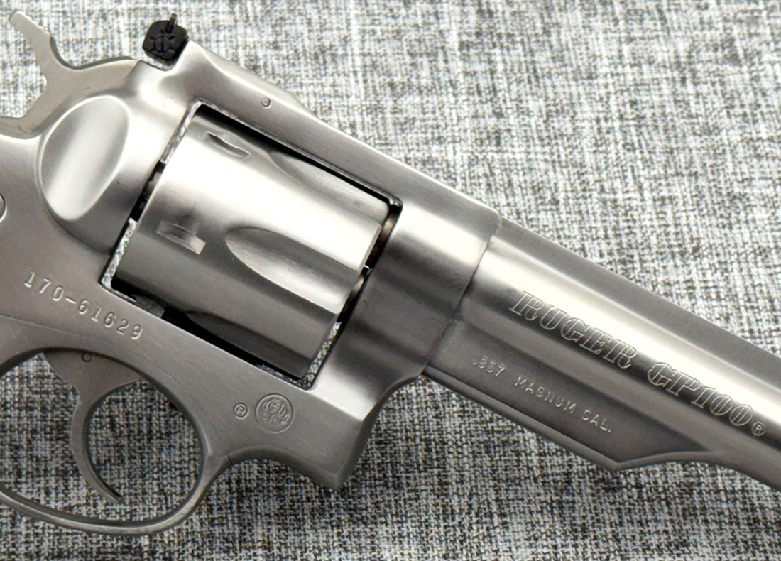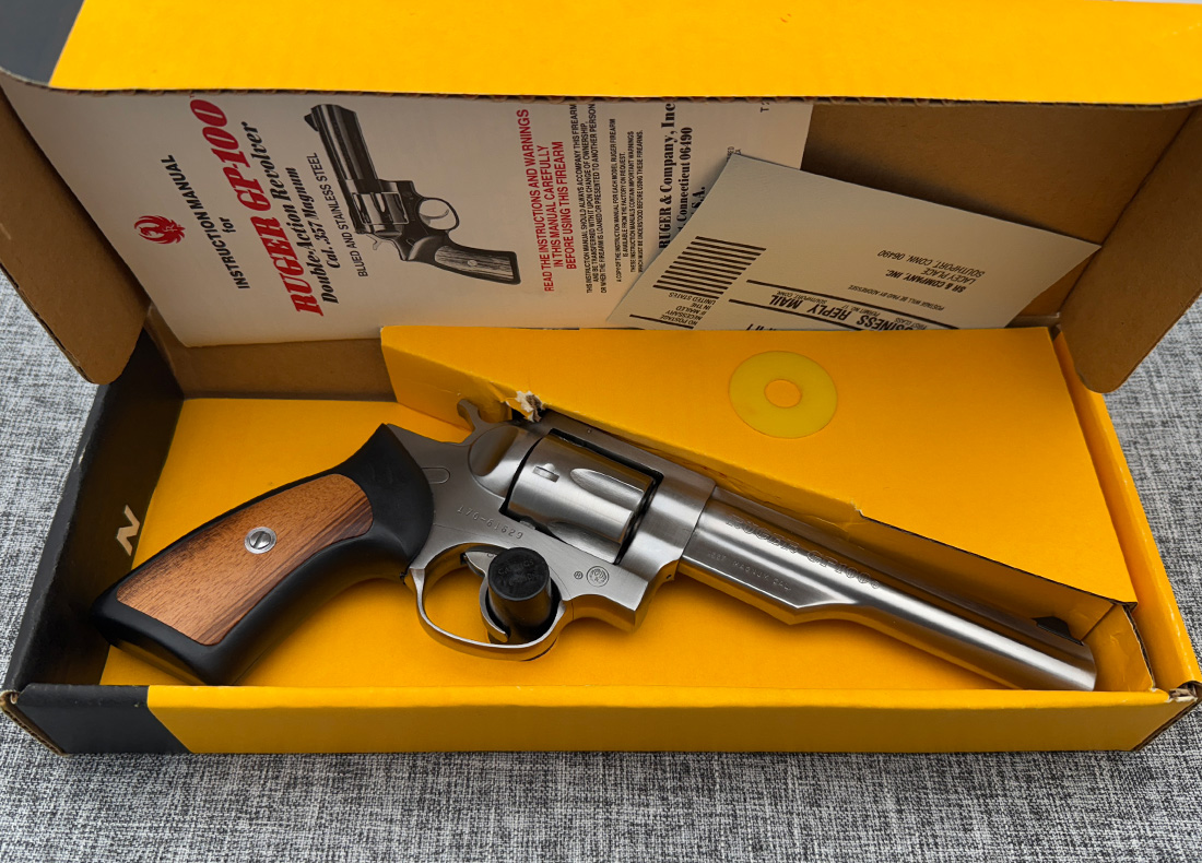Excellent Condition Ruger GP100 6″ chambered in .357 Magnum. This rare KGP160 variant (stainless model featuring 6″ short shroud barrel) of popular GP100 model comes with original cardboard box, outer cardboard sleeve and documentation. Below are the actual photos of the gun. We carry a wide selection of other Ruger firearms.