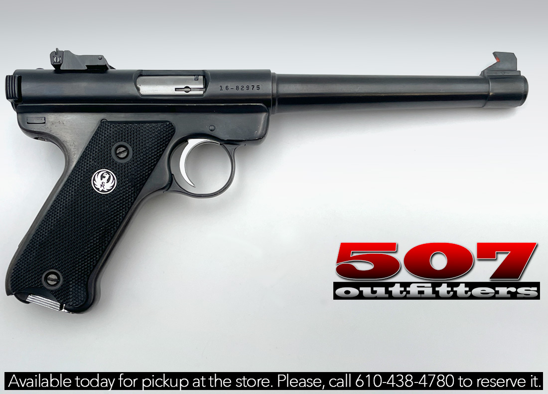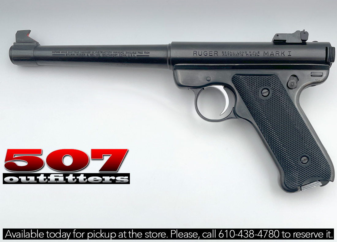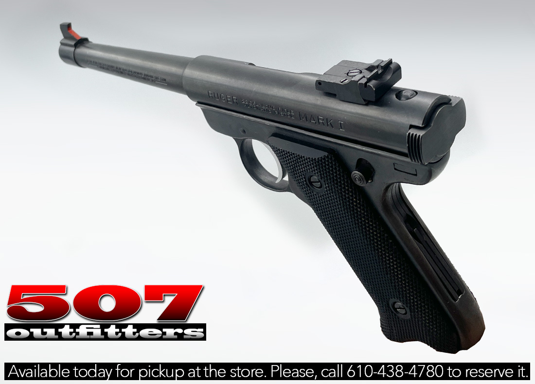 GOOD condition Ruger Mark I target pistol chambered in 22LR. It features a 7 inch barrel comes with one magazine. Available at 507 Outfitters in Easton, PA. We also carry other target pistols. Contact us for pricing and availability at contact@507outfitters.com, call us at 610-438-4780, or chat with us on WhatsApp by clicking in the bottom right corner.