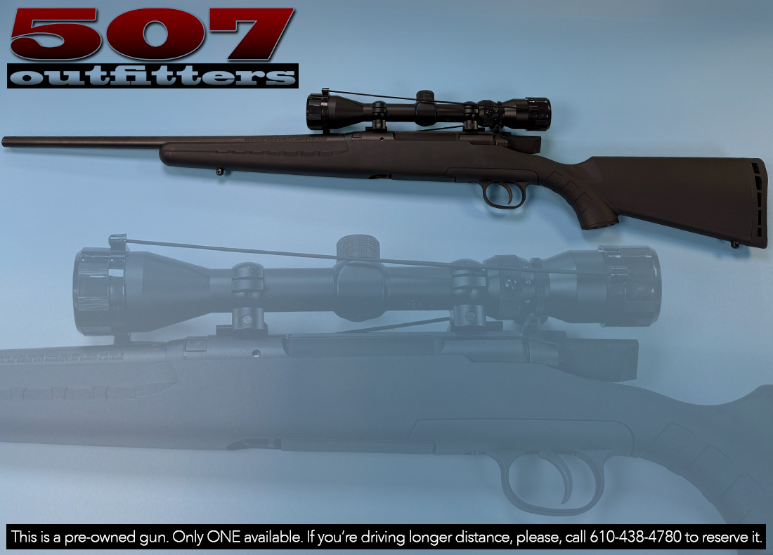 Excellent condition Savage Axis chambered in .243 Winchester. It comes with a scope. Available at 507 Outfitters in Easton, PA. We carry a wide selection of other hunting rifles. Contact us for pricing and availability at contact@507outfitters.com or call us at 610-438-4780.