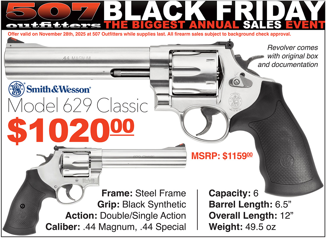 Only This Friday, November 28th, 2025, 8am-5pm at 507 Outfitters while supplies last. Very Limited Quantities! All firearms sales subject to background check approval.