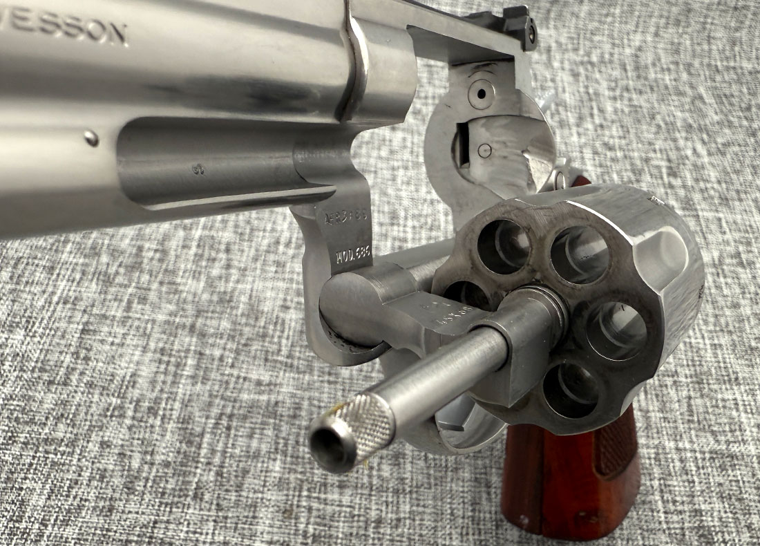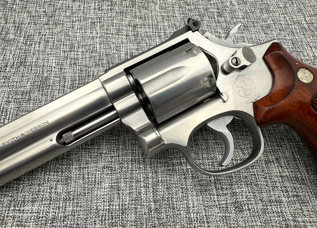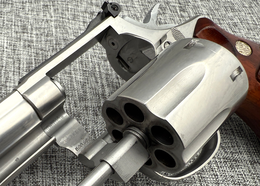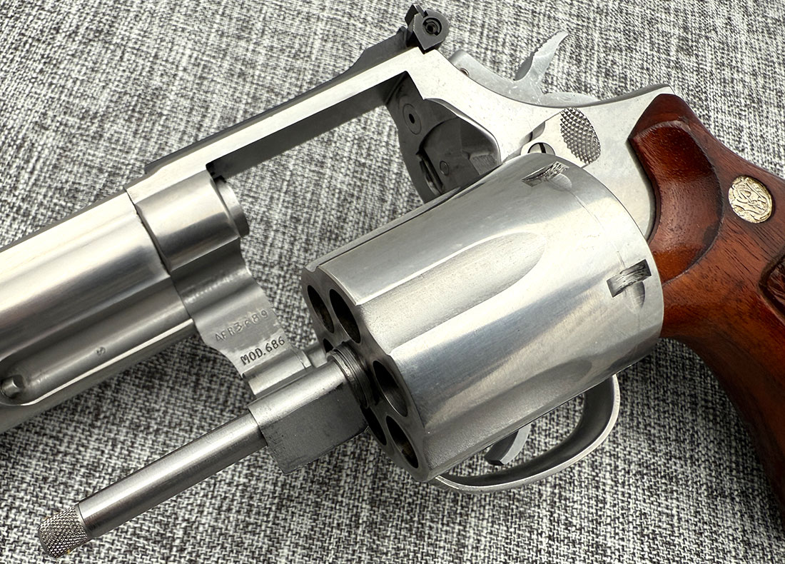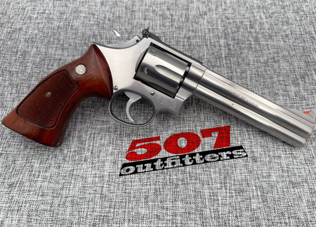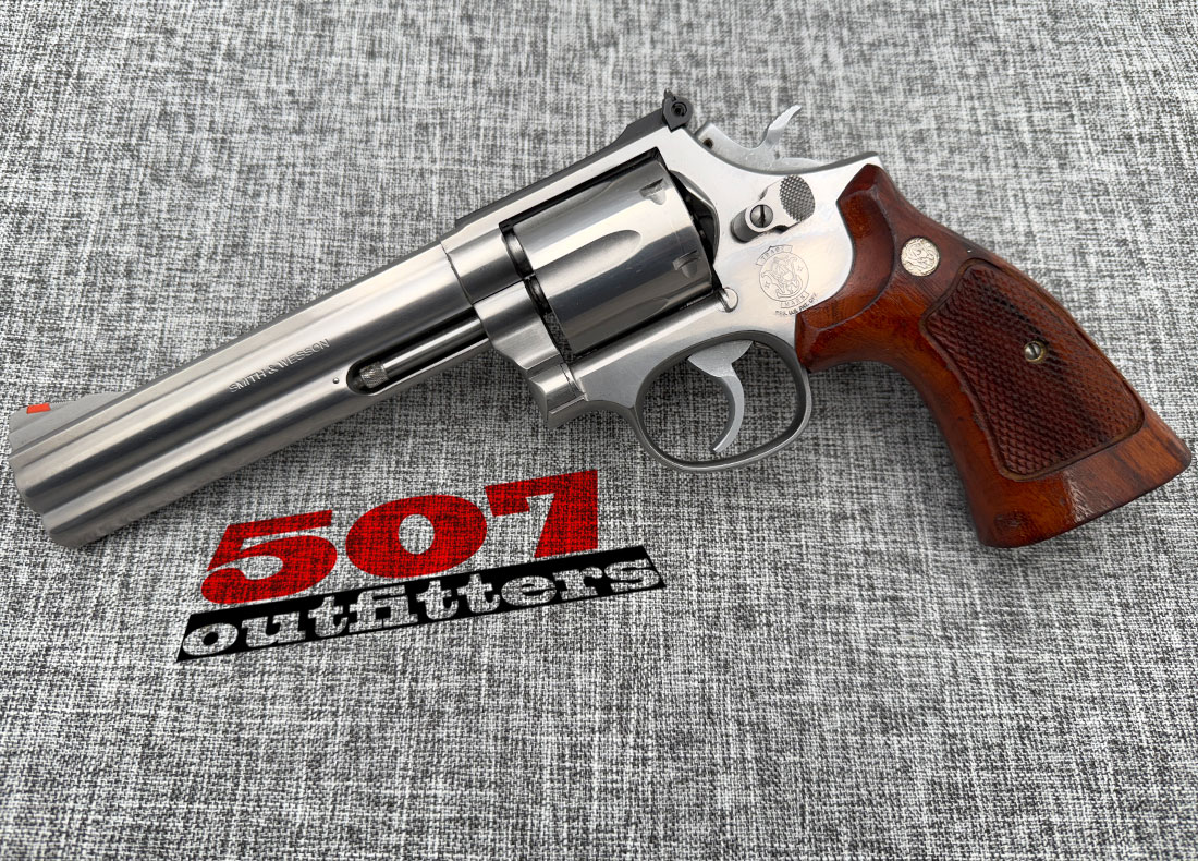 Very Good Condition Smith & Wesson 686 chambered in .357 Magnum. It’s a first variant (no-dash) of this model.This fantastic 6-shot revolver features 6″ barrel and wood grips. No box, no documentation. Below are the actual photos of the gun.