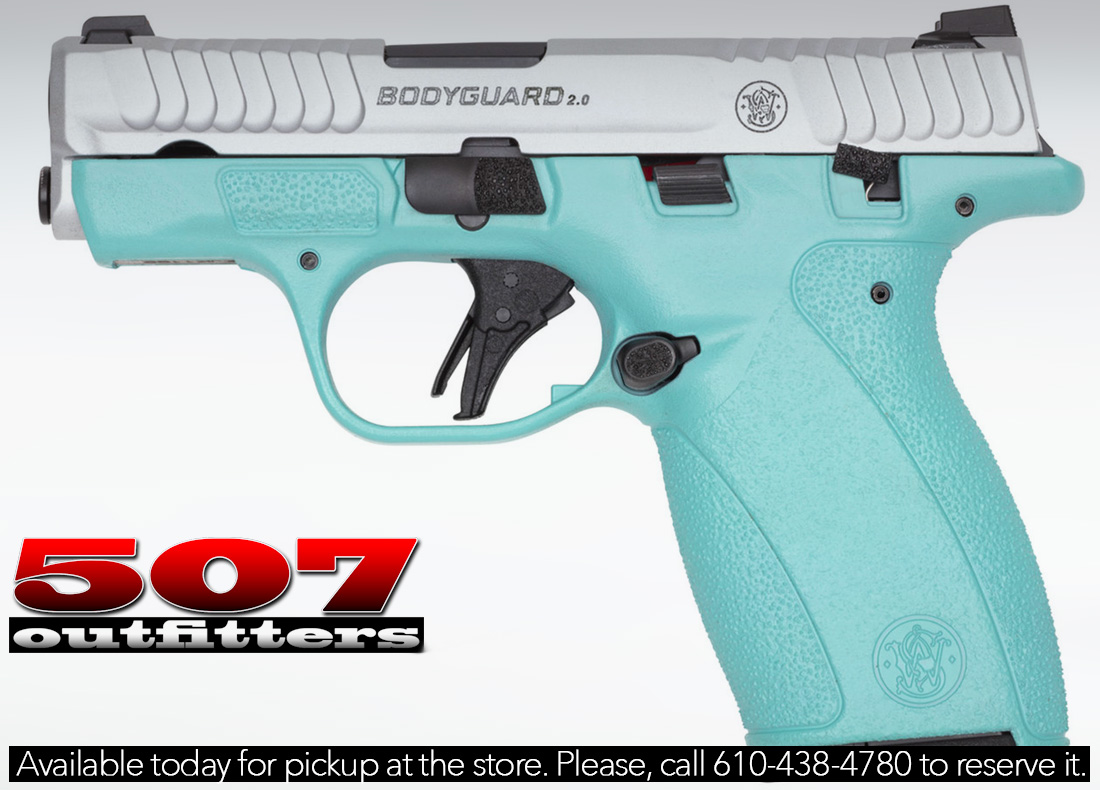 NEW Smith & Wesson Bodyguard 2.0 Robin Egg Blue/Silver chambered in .380ACP. We carry a wide selection of other Smith & Wesson firearms. Contact us for pricing and availability at contact@507outfitters.com, call us at 610-438-4780, or chat with us on WhatsApp by clicking in the bottom right corner.